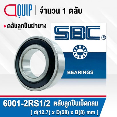 ตลับลูกปืน เม็ดกลม ฝายาง 2 ข้าง ใช้ได้กับงานอุตสาหกรรม และงานทั่วไป 6001-8-2RS / 6001 2RS / 6001RS ขนาด 12.7x28x8 มม.