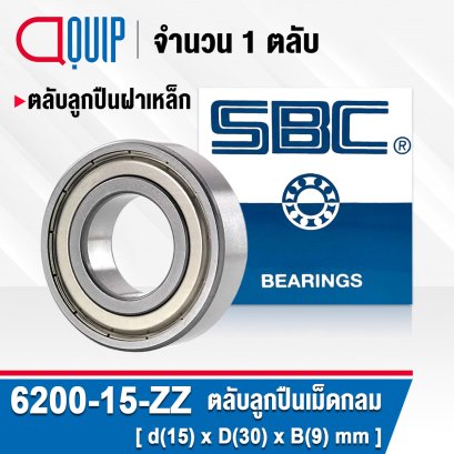 ตลับลูกปืน เม็ดกลม ฝาเหล็ก 2 ข้าง ใช้ได้กับงานอุตสาหกรรม และงานทั่วไป 6200-15ZZ / 6200-15 / 6200Z ขนาด 15x30x9 mm.