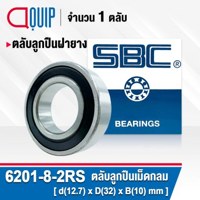 ตลับลูกปืนเม็ดกลม ร่องลึก ฝายาง 2 ข้าง ใช้ได้กับงานอุตสาหกรรม และงานทั่วไป 6201-8-2RS / 6201-2RS ขนาด 12.7x32x10 mm.