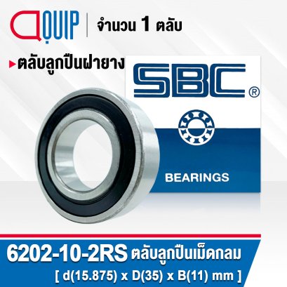 ตลับลูกปืนเม็ดกลม ร่องลึก ฝายาง 2 ข้าง ใช้ได้กับงานอุตสาหกรรม และงานทั่วไป 6202-10-2RS / 6202-2RS ขนาด 15.875x35x11 mm.