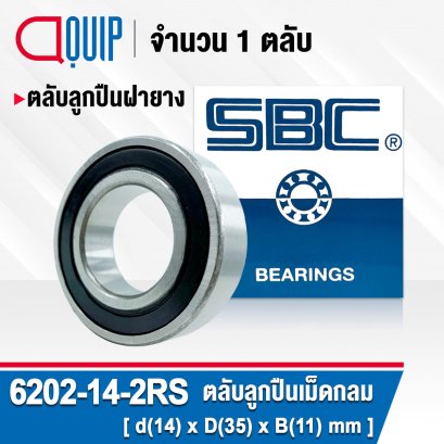 ตลับลูกปืน เม็ดกลม ฝายาง 2 ข้าง ใช้ได้กับงานอุตสาหกรรม และงานทั่วไป 6202-14-2RS / 6202 2RS / 6202RS ขนาด 14x35x11 mm.