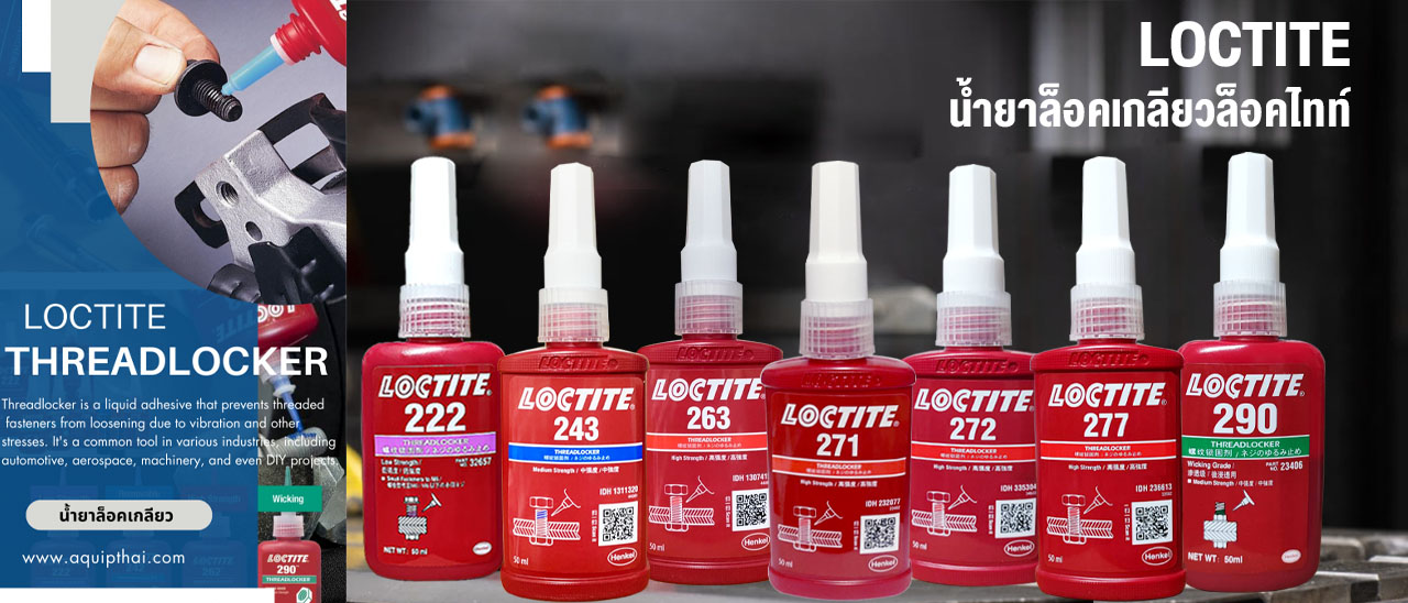 LOCTITE®243 แรงยึดปานกลาง สำหรับงานทั่วไป ใช้ได้กับโลหะทุกชนิด เช่น สแตนเลส อะลูมิเนียม หรือ โลหะชุบ อีกทั้งยังสามารถใช้ได้กับชิ้นส่วนที่มีน้ำมันปนเปื้อนอยู่เพื่อป้องกันการกัดกร่อน และยังทำหน้าที่เปรียบเสมือนน้ำหล่อเย็น (cutting fluids) ช่วยหล่อลื่นหรือเพื่อลดความร้อนและการเสียดสี เวลาติดตั้ง 10 นาที ทนอุณหภูมิ -55.0 - 180.0 °C (-65.0 - 360.0 °F )