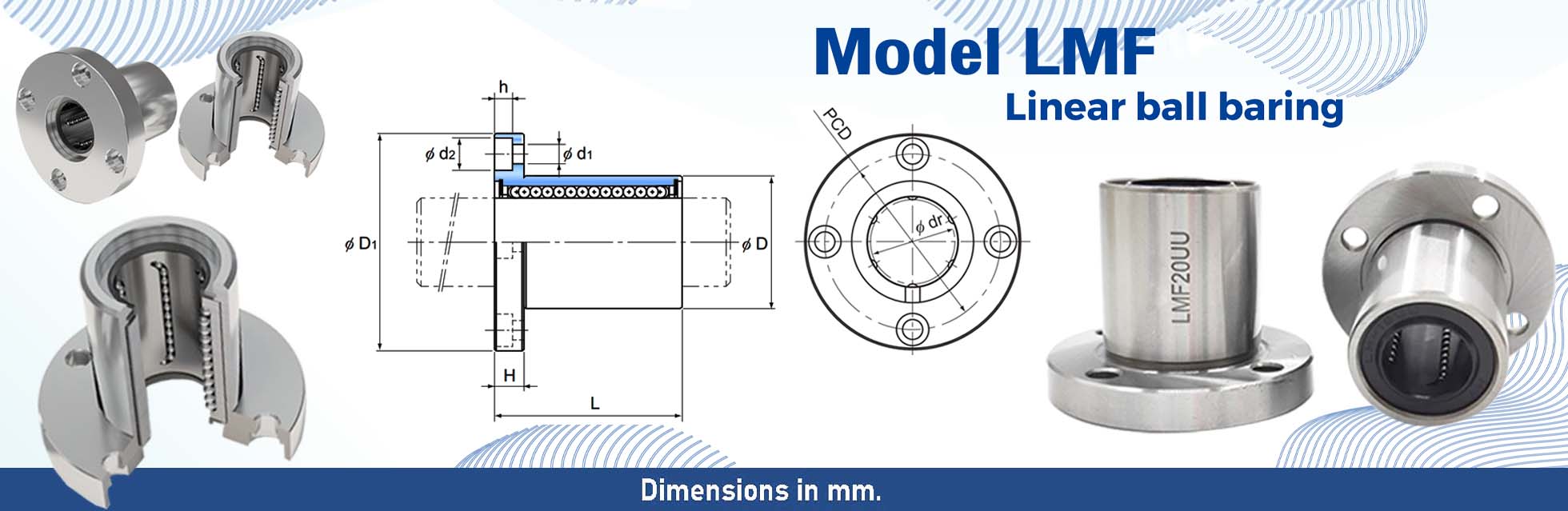 LMF20LUU ลิเนียร์แบริ่งสไลด์ / ลิเนียร์บุชชิ่ง / ลูกปืนสไลด์ / บุชหน้าแปลนกลม แบบยาว สำหรับเพลา 20 มม.