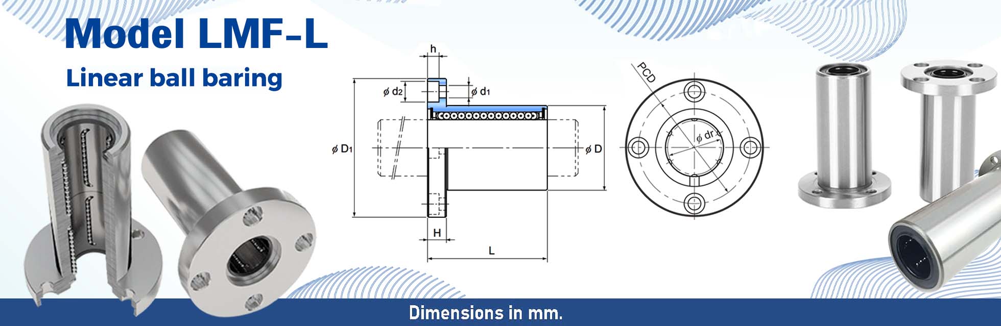 LMF10LUU ลิเนียร์แบริ่งสไลด์ / ลิเนียร์บุชชิ่ง / ลูกปืนสไลด์ / บุชหน้าแปลนกลม แบบยาว สำหรับเพลา 10 มม.