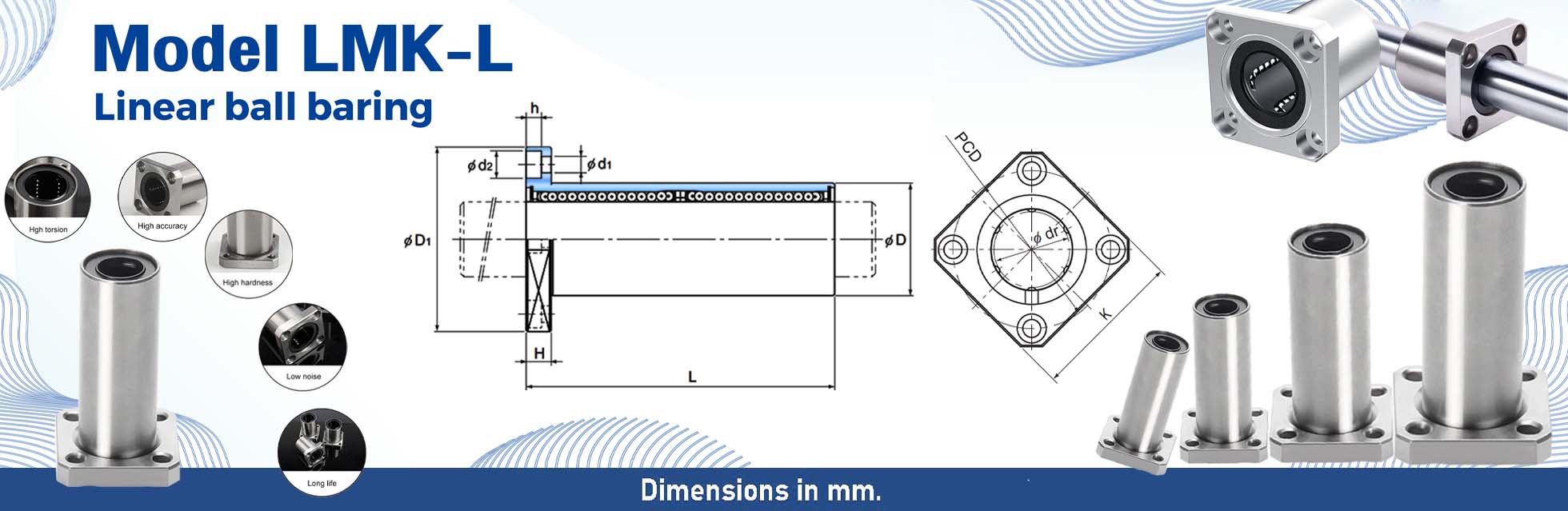 LMK10LUU ลิเนียร์แบริ่งสไลด์ / ลิเนียร์บุชชิ่ง / ลูกปืนสไลด์ / บุชหน้าแปลนสี่เหลี่ยม แบบตัวยาว สำหรับเพลา 10 มม.