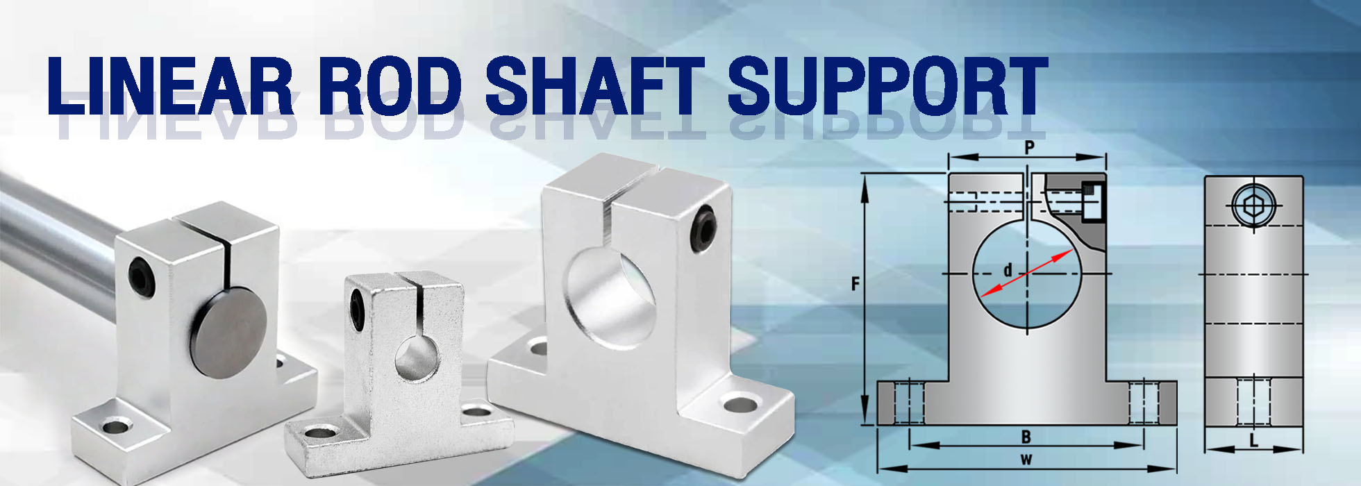 SHAFT SUPPORT = ขารับแกนเพลา / ตัวยึดแกนเพลา เป็นอุปกรณ์ที่ใช้ รองรับและยึดแกนเพลา (Shaft) ให้อยู่ในตำแหน่งตามต้องการ ป้องกันการสั่นและการโก่งตัวของเพลา ใช้คู่กับ Linear Shaft / Shaft Guide ในงานระบบลำเลียง เครื่อง CNC, Automation, Robot และเครื่องจักรทั่วไป