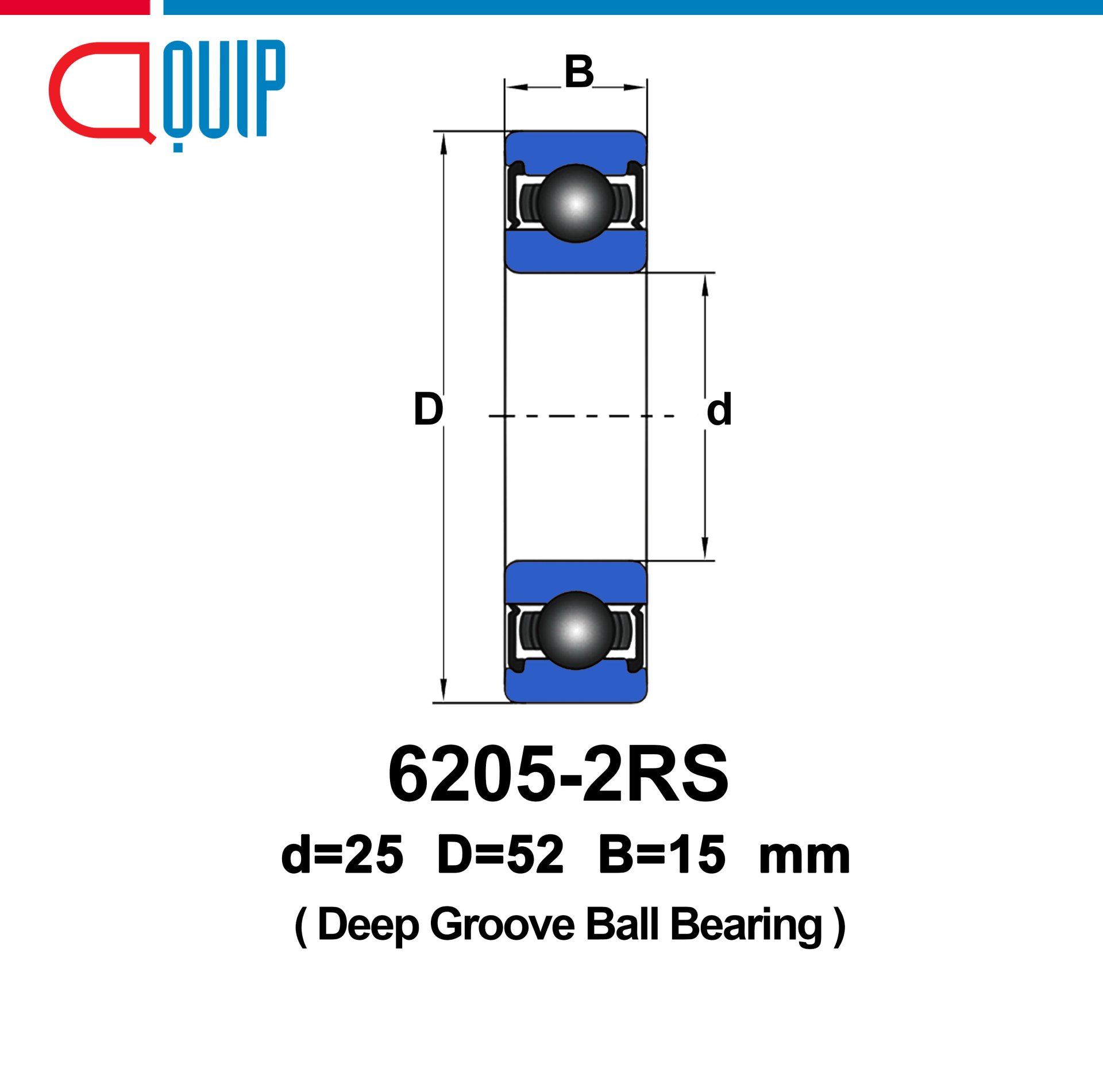 ตลับลูกปืนเม็ดกลม ร่องลึก ฝายาง 2 ข้าง ใช้กับงานอุตสาหกรรมทั่วไป 6205-2RS / 6205 2RS / 6205RS ขนาด 25x52x15mm.
