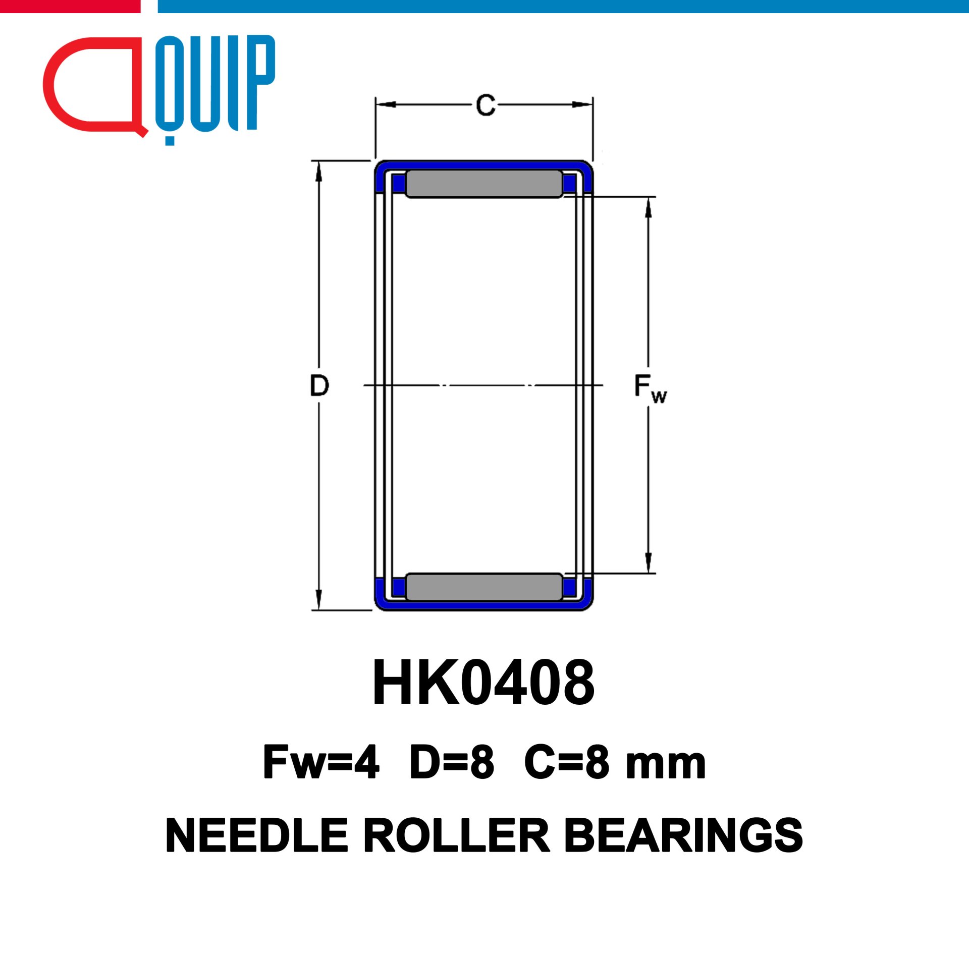 ตลับลูกปืนเม็ดเข็ม แบริ่งเม็ดเข็ม หมุนสองทาง ใช้กับงานอุตสาหกรรมทั่วไป HK0408 / HK 0408 ขนาด 4x8x8 มม.