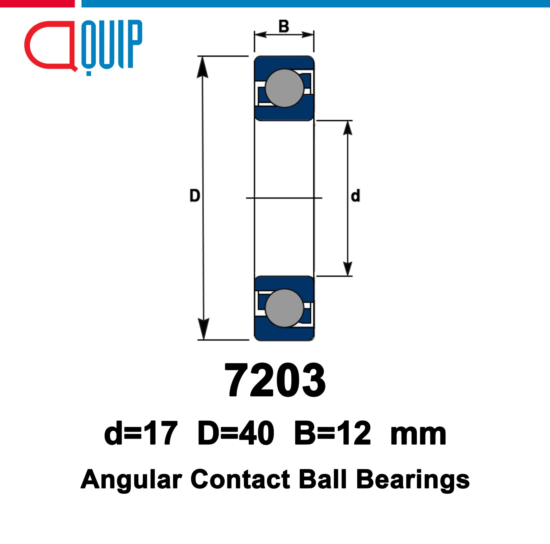 ตลับลูกปืนเม็ดกลม สัมผัสเชิงมุม เบอร์ 7203CAngular Contact Ball Bearing ( Single Row ) ตลับลูกปืนเม็ดกลม สัมผัสเชิงมุม แถวเดียวSpecificationsขนาดของรูใน ID (d) : 17 mmขนาดของวงนอก OD (D) : 40 mmความหนา Width (B) : 12 mm