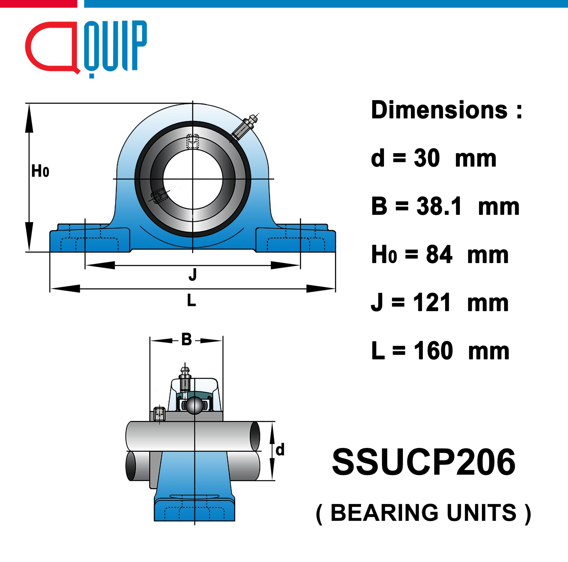 ตลับลูกปืนตุ๊กตา สเตนแลส เบอร์ SSUCP206STAINLESS STEEL BEARING UNITS ตลับลูกปืนตุ๊กตา สเตนแลสSpecifications d = 30 mm B = 38.1 mm H0 = 84 mm J = 121 mm L = 160 mm