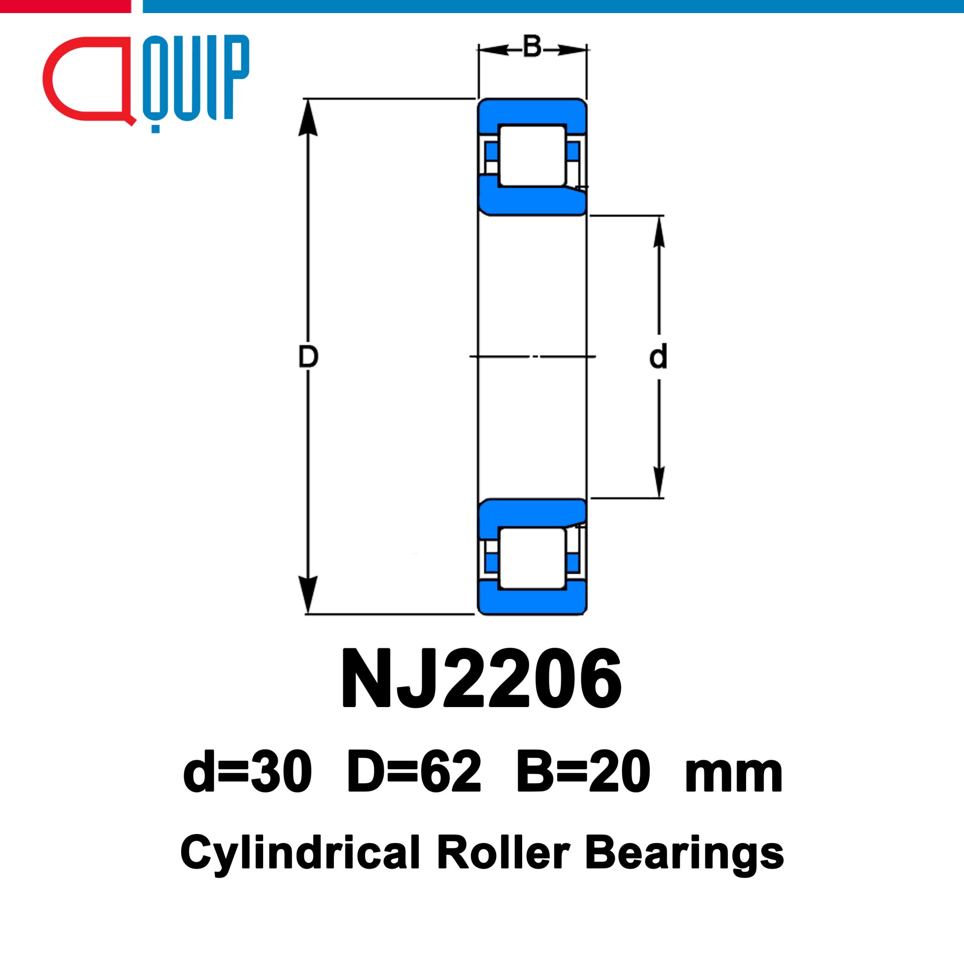 ตลับลูกปืน เม็ดทรงกระบอก รังทองเหลือง ใช้ได้กับงานอุตสาหกรรม และงานทั่วไป NJ2206EM / NJ2206 EM / NJ 2206 EM ขนาด 30x62x20 มม.