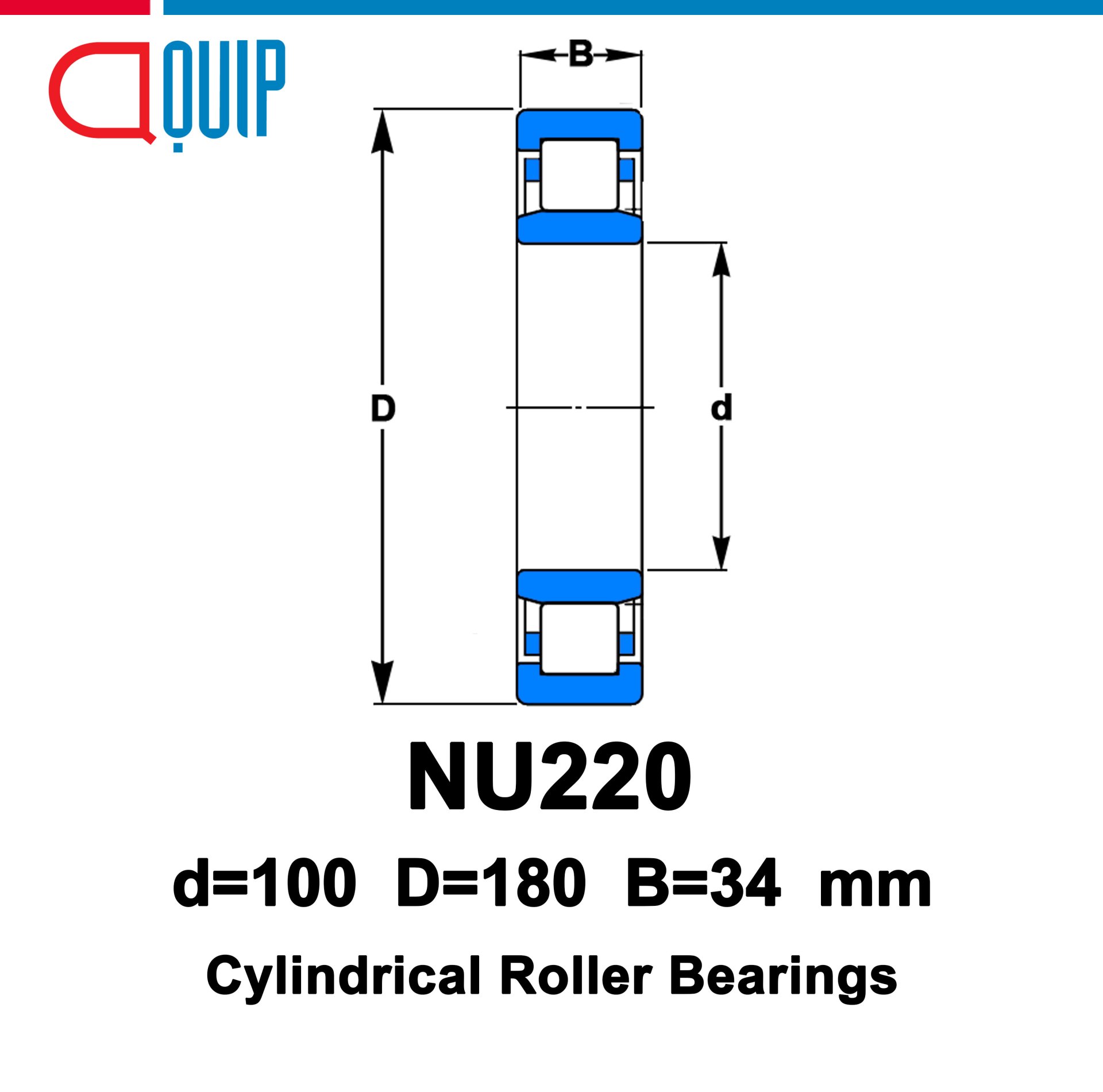 NU220 / NU220EM ตลับลูกปืน เม็ดทรงกระบอก ใช้ได้กับงานอุตสาหกรรม และงานทั่วไป ขนาด 100x180x34 มม.