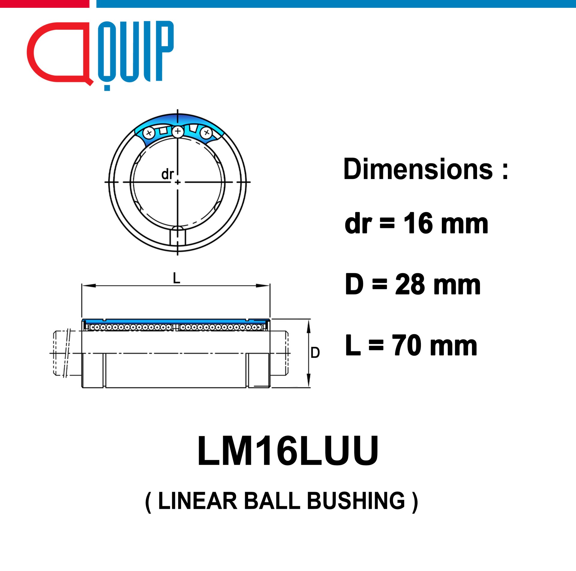 ลิเนียร์แบริ่งสไลด์ / ลิเนียร์บุชชิ่ง / บุชกลม ใช้สำหรับงานอุตสาหกรรม และงานทั่วไป LM16LUU / LM16L / LM16 LUU ขนาด 16x28x70 มม.