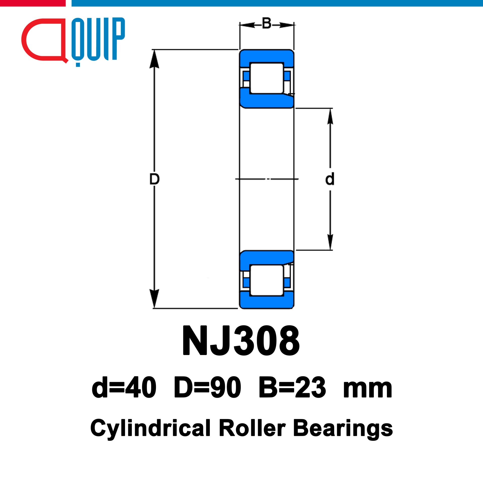 ตลับลูกปืน เม็ดทรงกระบอก รังทองเหลือง ใช้ได้กับงานอุตสาหกรรม และ งานทั่วไป NJ308EM / NJ308 EM ขนาด 40x90x23 มม.
