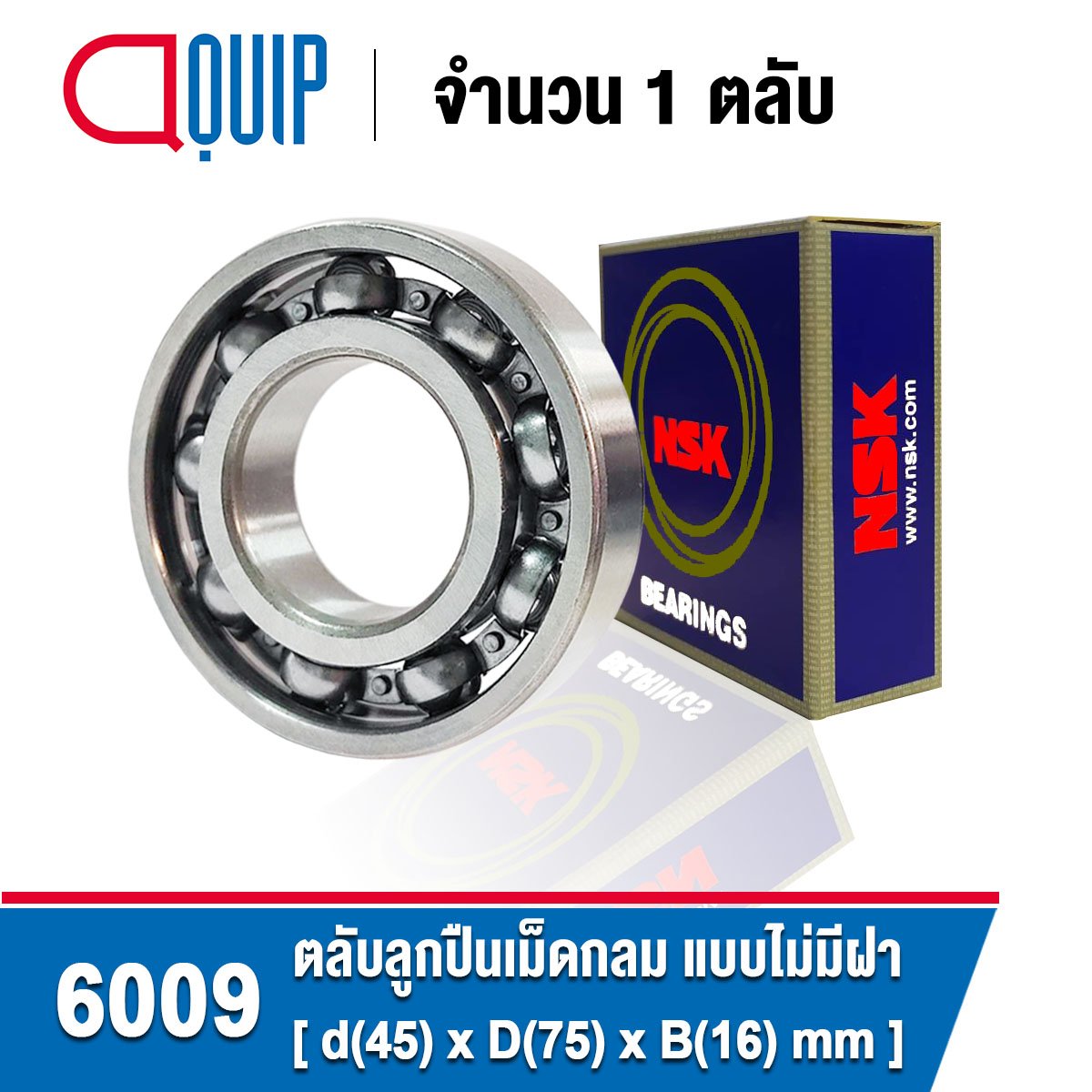 ตลับลูกปืนเม็ดกลม ร่องลึก แบบไม่มีฝา ใช้ได้กับงานอุตสาหกรรม และงานทั่วไป 6009 ขนาด 45x75x16 mm.