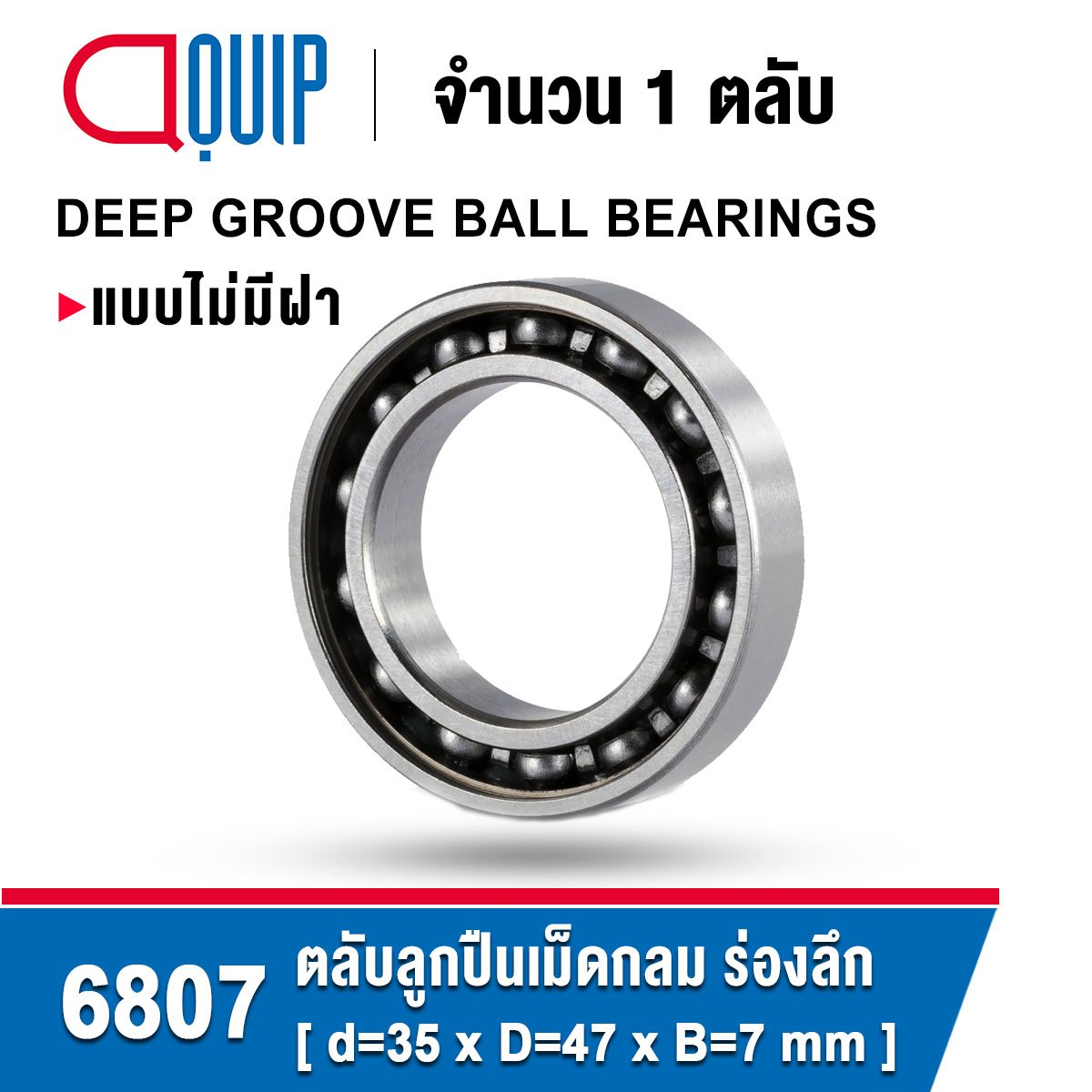ตลับลูกปืนเม็ดกลม ร่องลึก แบบไม่มีฝา ใช้กับงานอุตสาหกรรมทั่วไป 6807 / 61807 ขนาด 35x47x7 mm