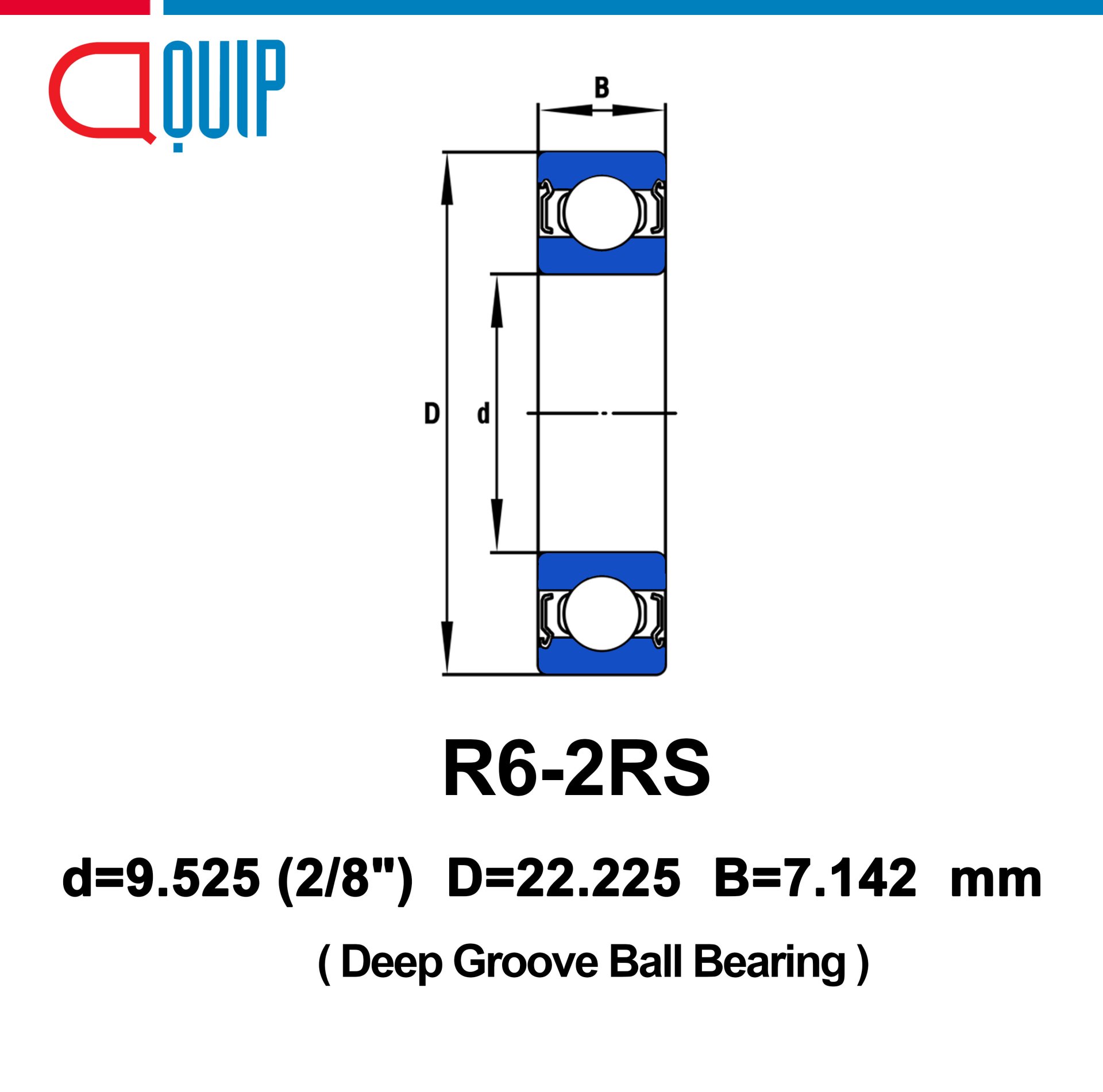 ตลับลูกปืนเม็ดกลม ร่องลึก ตลับลูกปืนนิ้ว ฝายาง 2 ข้าง ใช้กับงานอุตสาหกรรมทั่วไป R6-2RS / R6 2RS / R6RS สำหรับเพลา 2/8" หรือ 9.525 mm