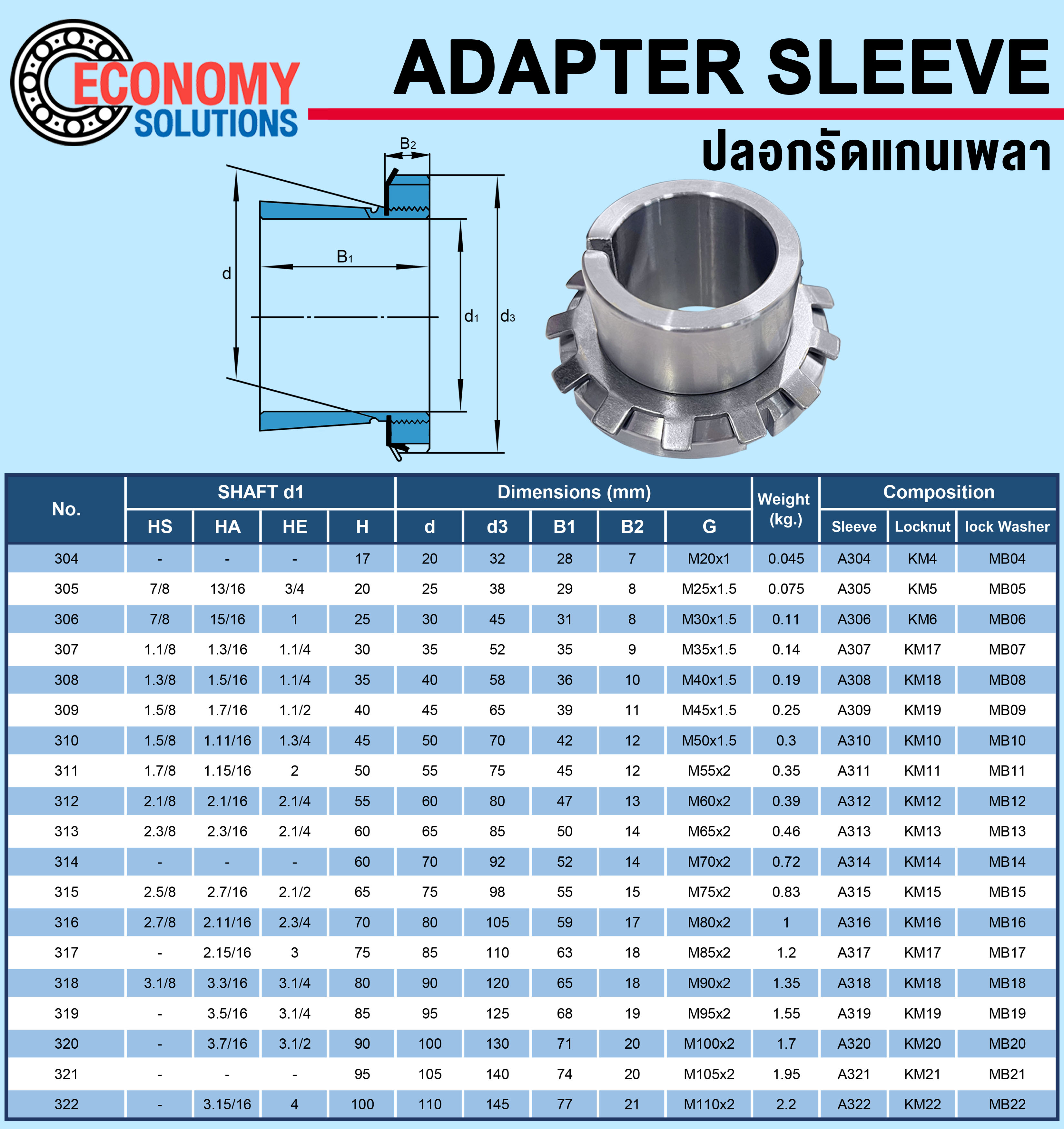 หมวดหมู่ : ADAPTER SLEEVE AND LOCK NUTS ,  ADAPTER SLEEVE ,  ECONOMY SOLUTIONS ,