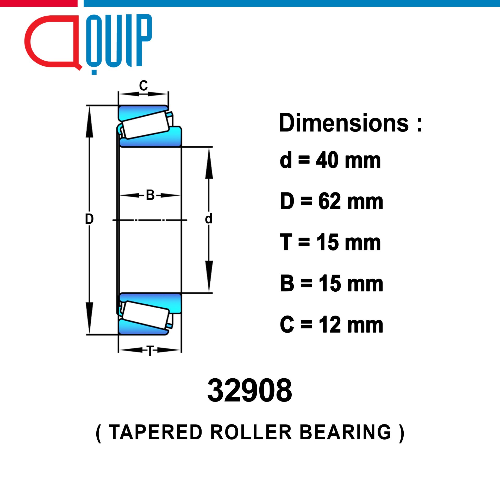 ตลับลูกปืน เม็ดเรียว / ตับลูกปืนเตเปอร์ สำหรับงานอุตสาหกรรมทั่วไป 32908 / 32908X ขนาด 40x62x15 มม.