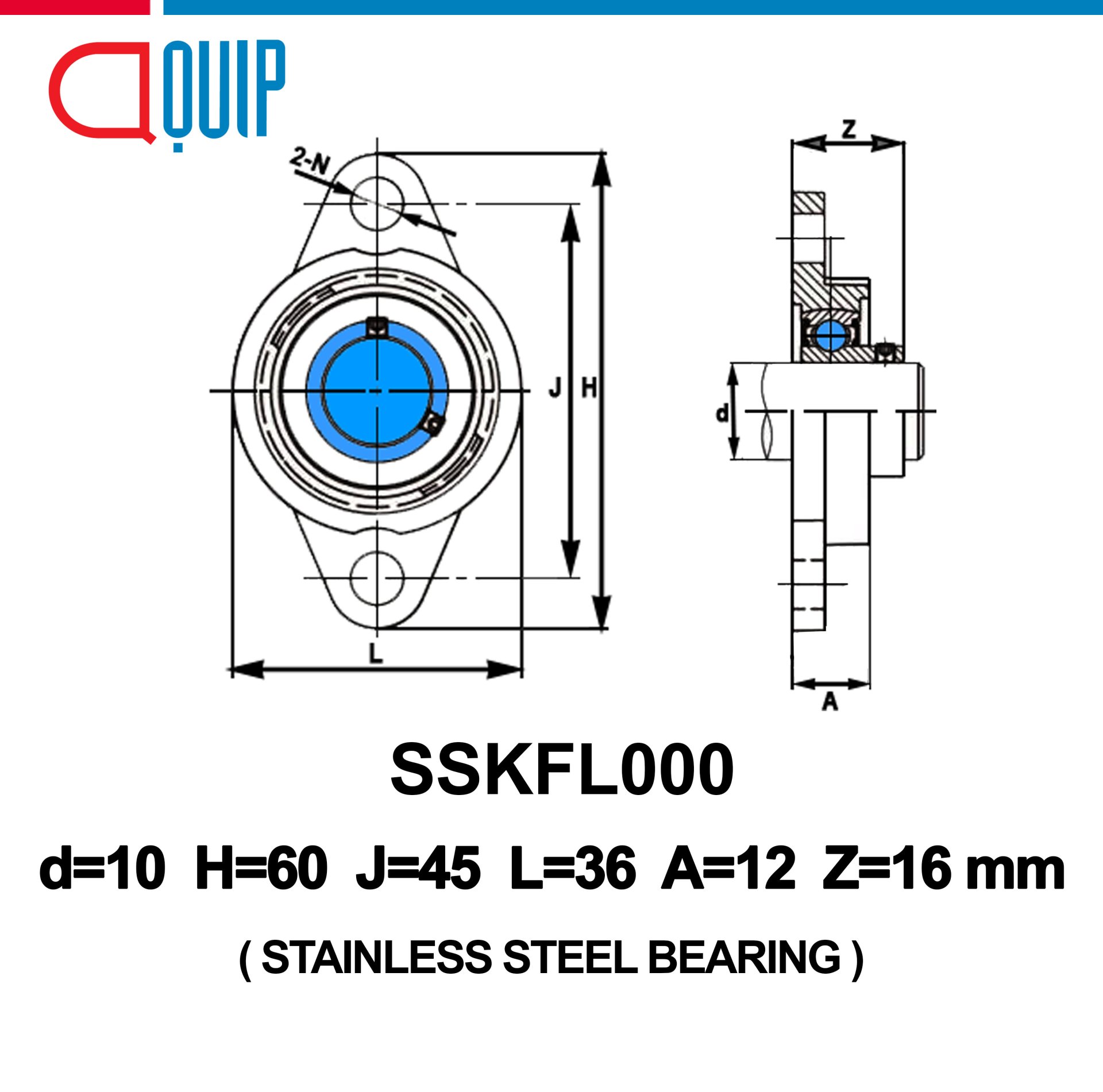 ตลับลูกปืนตุ๊กตา ขนาดเล็ก เบอร์ SSKFL000STAINLESS STEEL FLANGE BEARING UNITS ตลับลูกปืนตุ๊กตา สเตนแลส ขนาดเล็กSpecifications d = 10 mm H = 60 mm J = 45 mm L = 36 mm A = 12 mm Z = 16 mm
