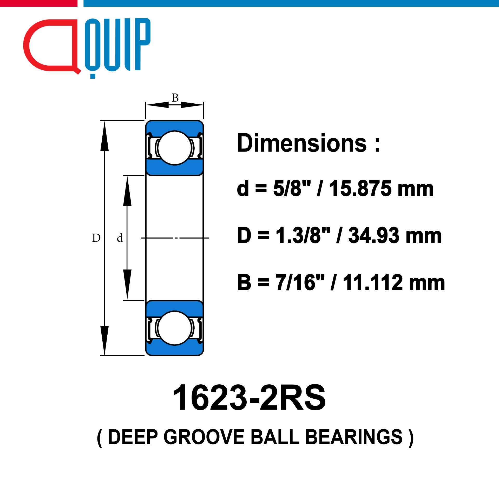ตลับลูกปืนเม็ดกลม ร่องลึก ตลับลูกปืนนิ้ว ฝายาง 2 ข้าง ใช้กับงานอุตสาหกรรมทั่วไป 1623-2RS / 1623 2RS / 1623RS ขนาด 15.875x34.93x11.112 mm.