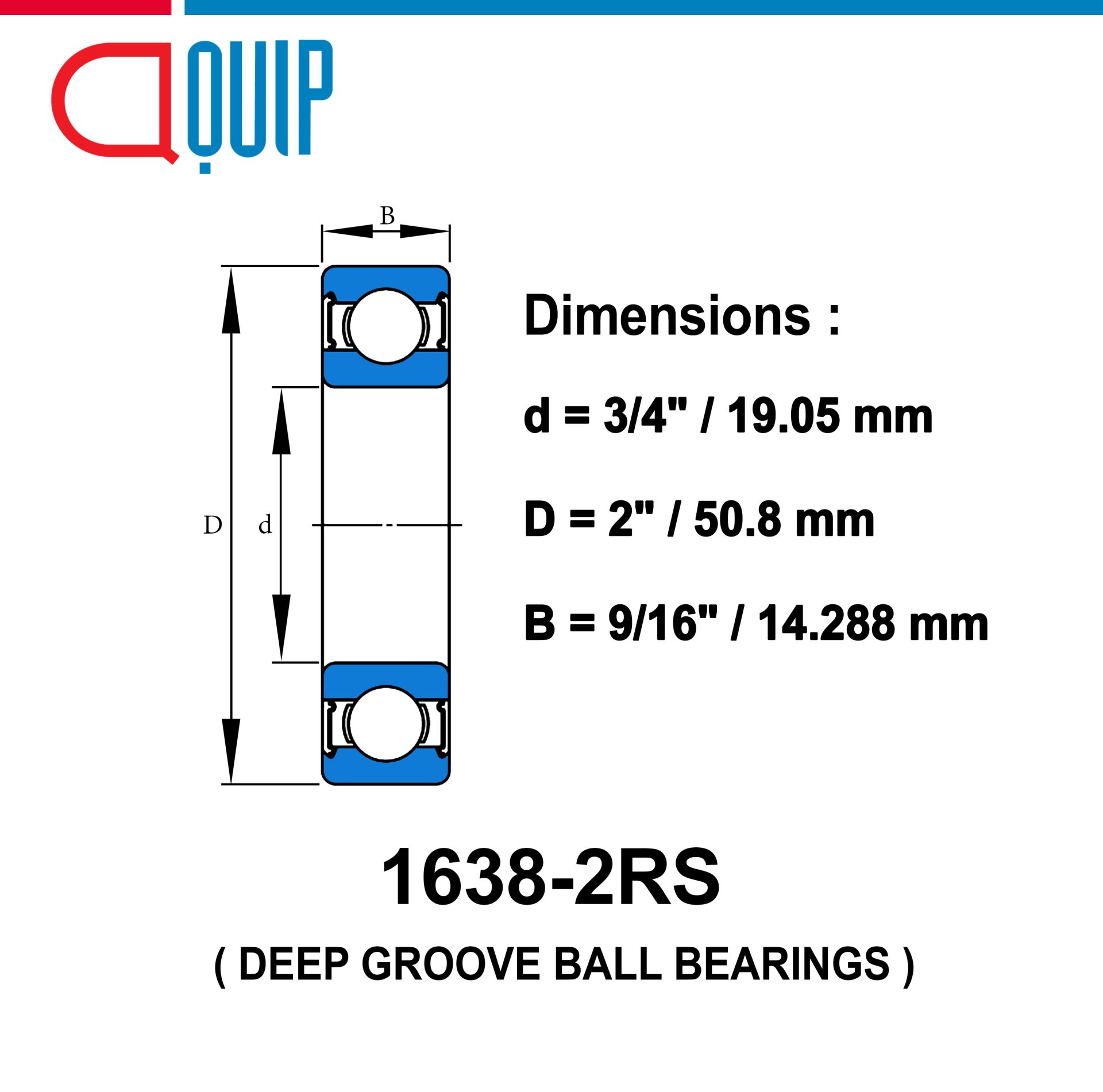 ตลับลูกปืนเม็ดกลม ร่องลึก ตลับลูกปืนนิ้ว ฝายาง 2 ข้าง ใช้กับงานอุตสาหกรรมทั่วไป 1638-2RS / 1638 2RS / 1638RS ขนาด 19.05x50.8x14.288 mm.