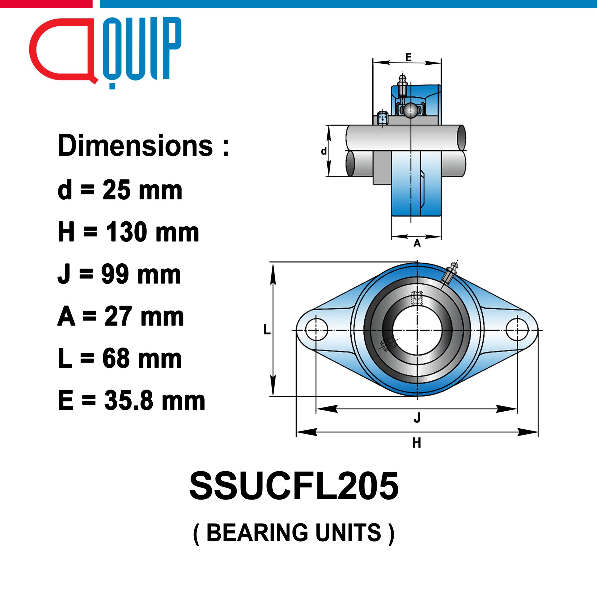 ตลับลูกปืนตุ๊กตา สเตนแลส (เสื้อสแตนเลส+ลูกสแตนเลส) สำหรับงานอุตสาหกรรม และงานทั่วไป SSUCFL205 / SUCFL205 / SSUCFL 205 / SUCFL 205 สำหรับเพลา 25 มม.