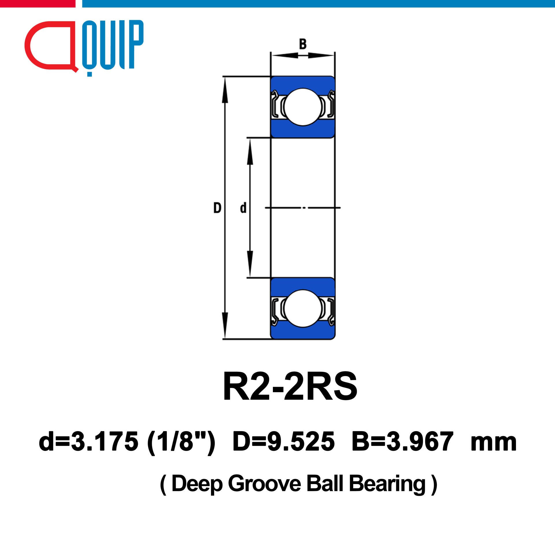 ตลับลูกปืนเม็ดกลม ร่องลึก ตลับลูกปืนนิ้ว ฝายาง 2 ข้าง ใช้กับงานอุตสาหกรรมทั่วไป R2-2RS / R2 2RS / R2RS สำหรับเพลา 1/8" หรือ 3.175 mm