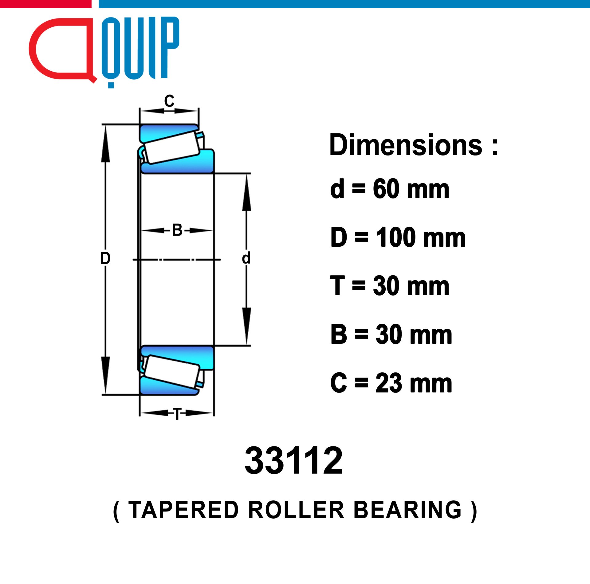 ตลับลูกปืน เม็ดเรียว ตลับลูกปืนเตเปอร์ ใช้กับงานอุตสาหกรรม และงานทั่วไป 33112 / 33112J / 33112X ขนาด 60x100x30 มม.