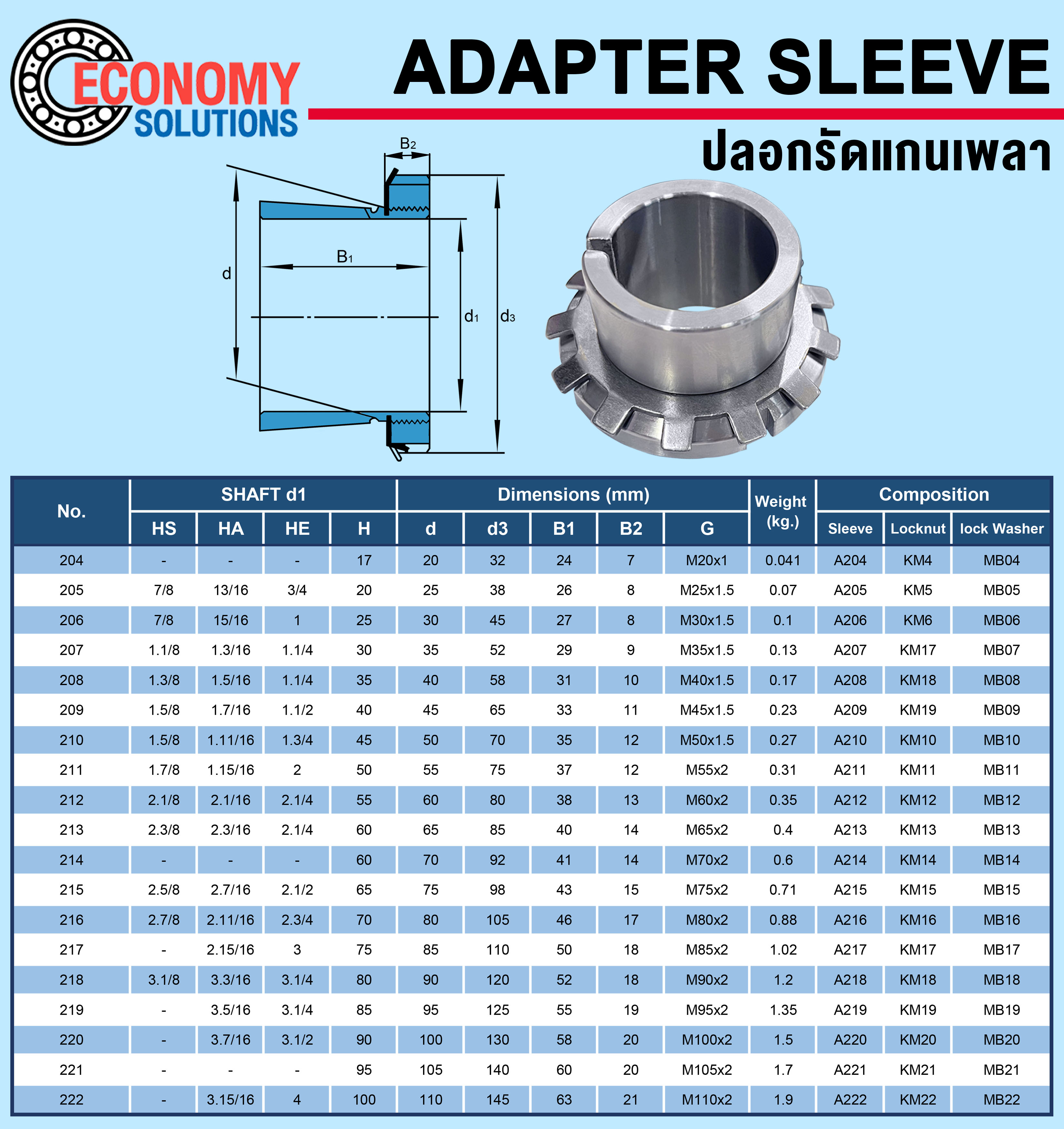 หมวดหมู่ : ADAPTER SLEEVE AND LOCK NUTS ,  ADAPTER SLEEVE ,  ECONOMY SOLUTIONS ,