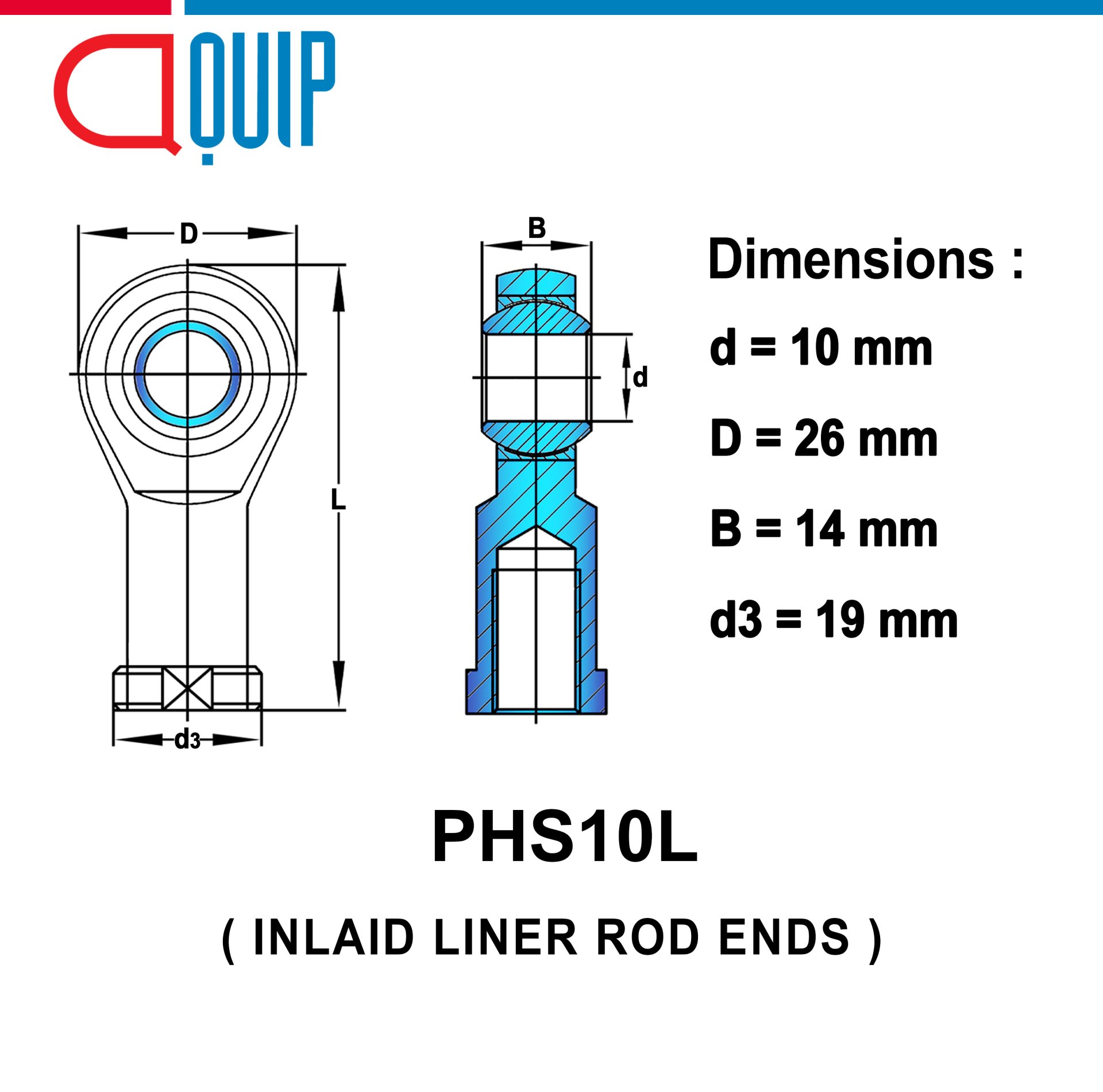 PHS10L ( M10x1.5 ) INLAID LINER ROD ENDS