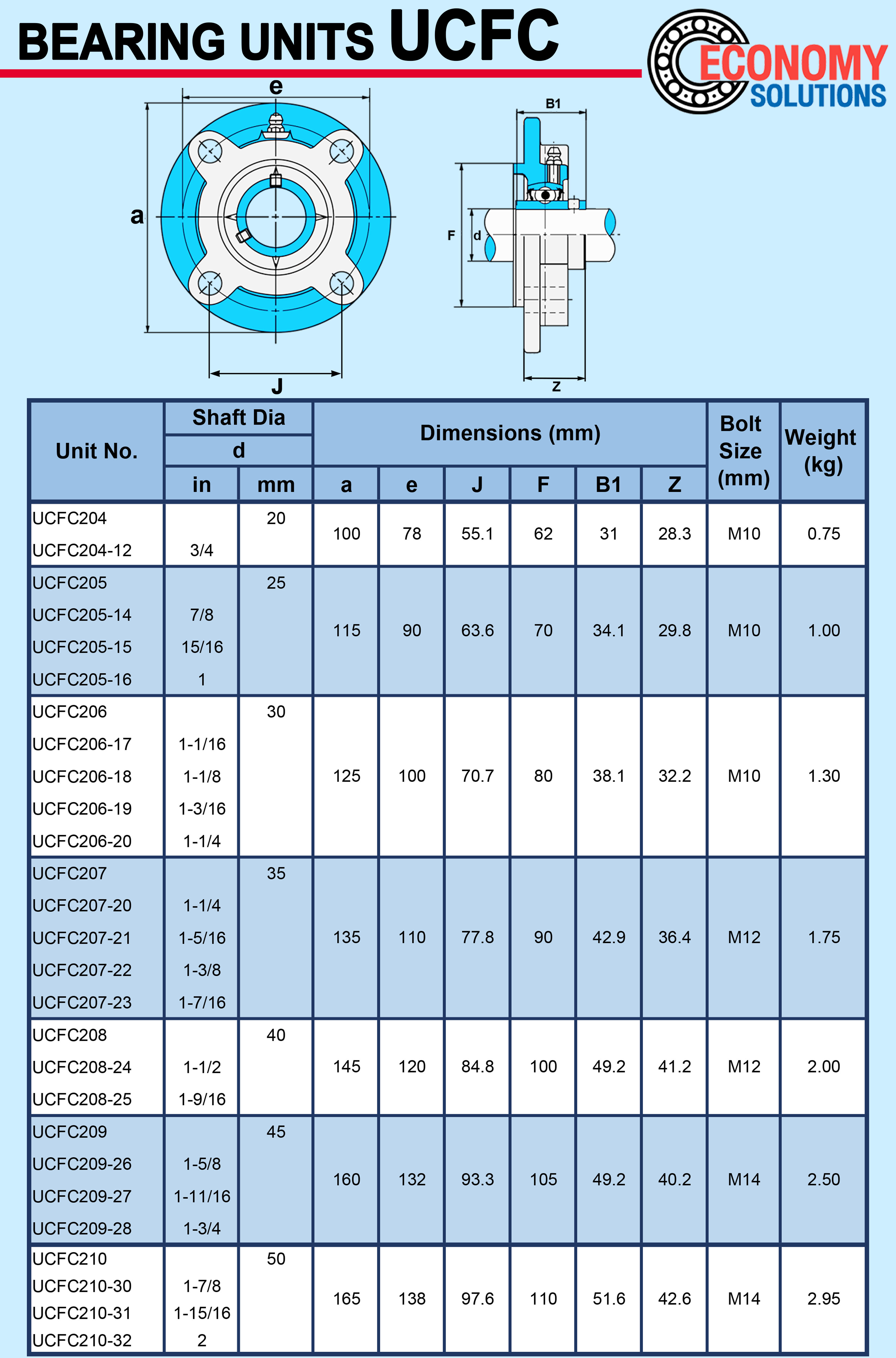 ตลับลูกปืนตุ๊กตา เบอร์ UCFC204 ( UC204+FC204 )BEARING UNITS ตลับลูกปืนตุ๊กตา ลูก+เสื้อ สำหรับงานอุตสาหกรรมงานทั่วไปSpecifications : d : 20 mm a : 100 mm e : 78 mm J : 55.1 mm Bolt Size : M10